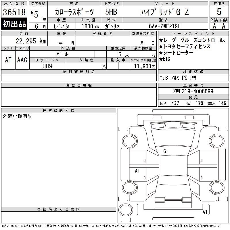 TOYOTA COROLLA SPORT HYBRID G Z - лот 36518