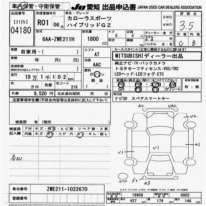 TOYOTA COROLLA SPORT HYBRID GZ - лот 4180