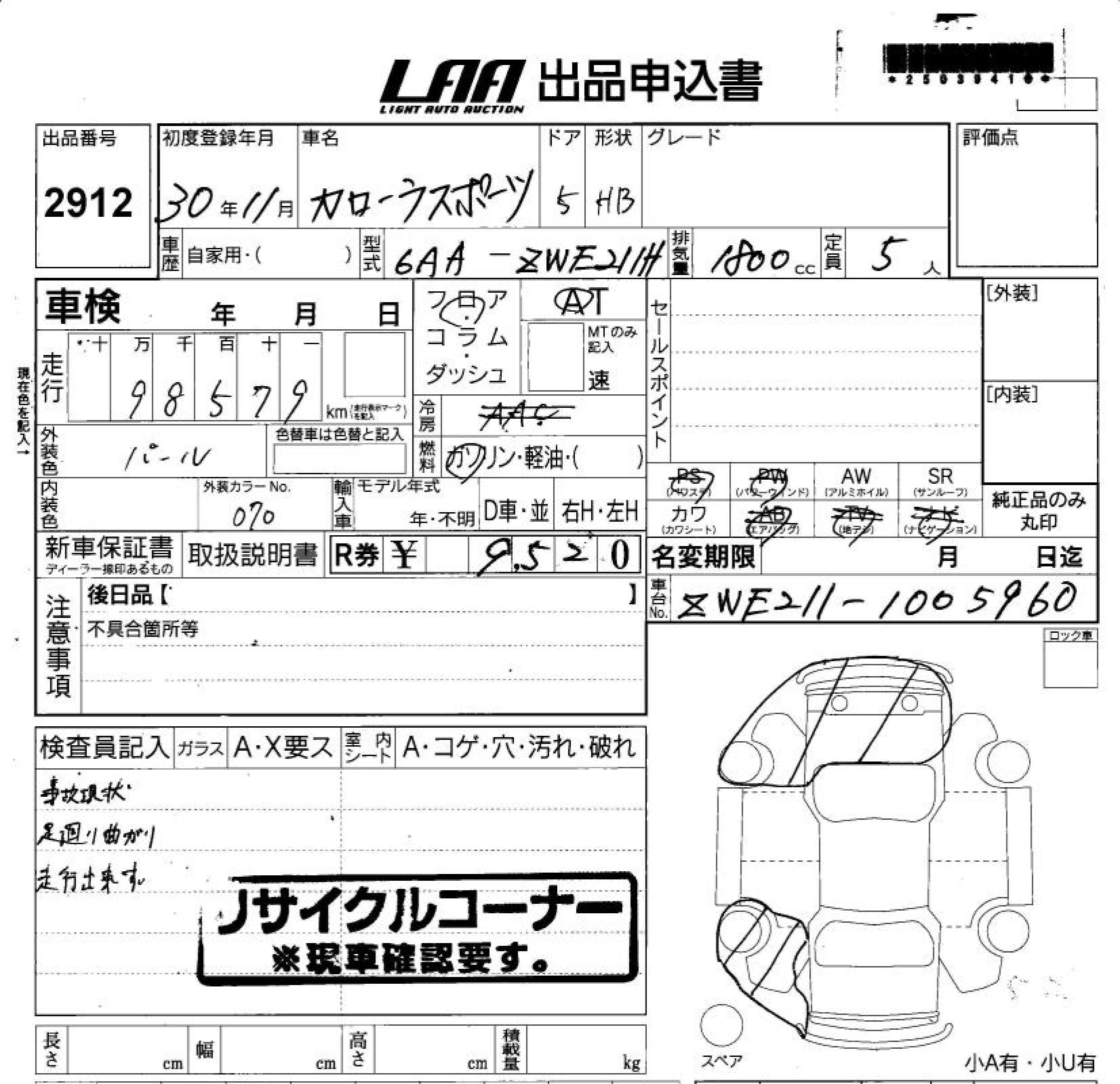 TOYOTA COROLLA SPORT - лот 2912