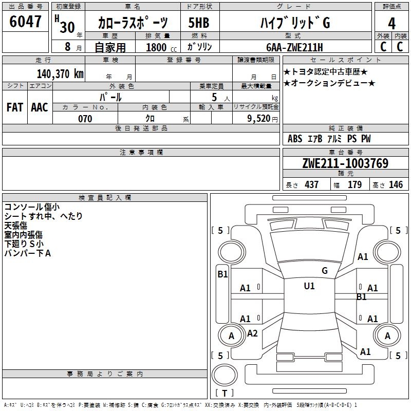 TOYOTA COROLLA SPORT HYBRID G - лот 6047