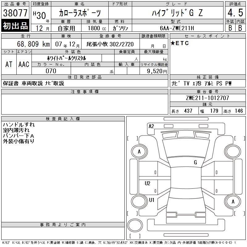 TOYOTA COROLLA SPORT HYBRID G Z - лот 38077