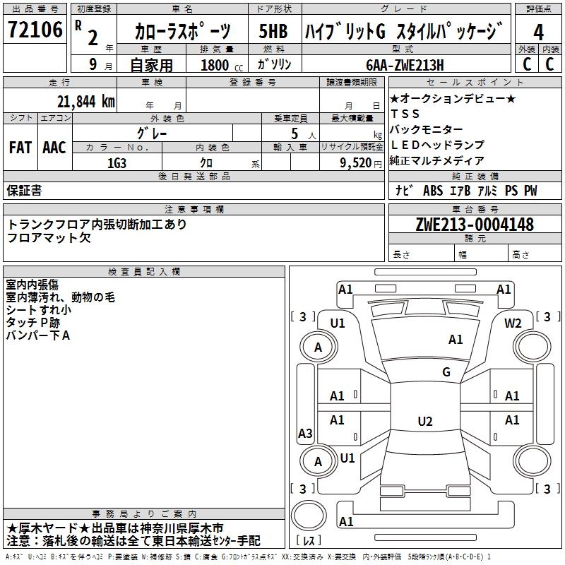 TOYOTA COROLLA SPORT HYBRID G STYLE PACKAGE - лот 72106