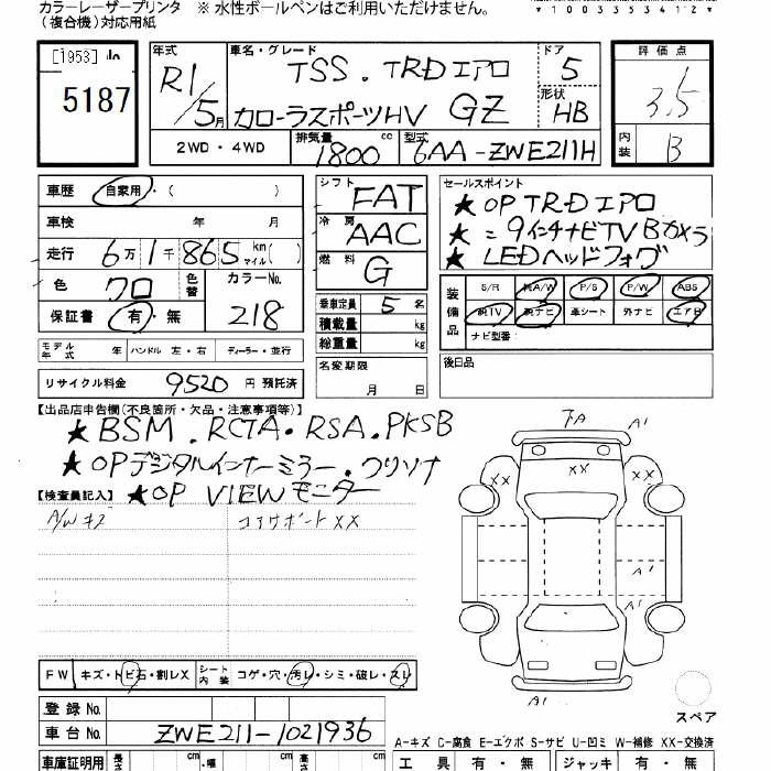 TOYOTA COROLLA SPORT - лот 5187