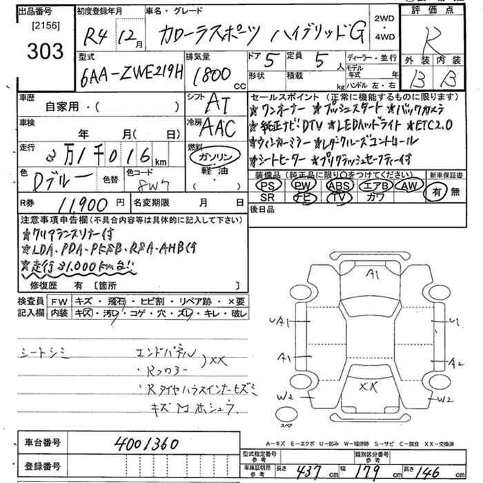 TOYOTA COROLLA SPORT HYBRID G - лот 303