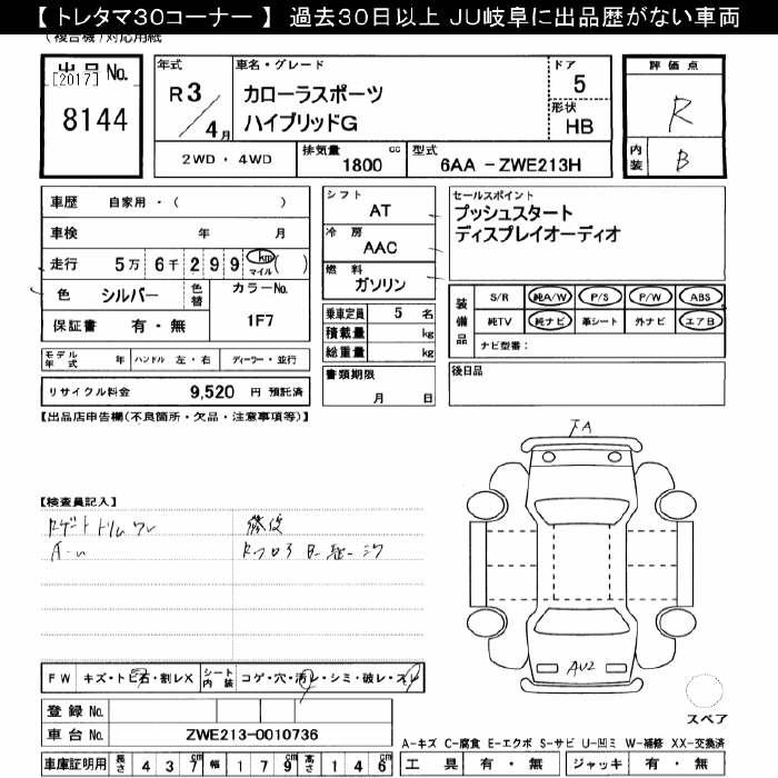 TOYOTA COROLLA SPORT HYBRID G - лот 8144