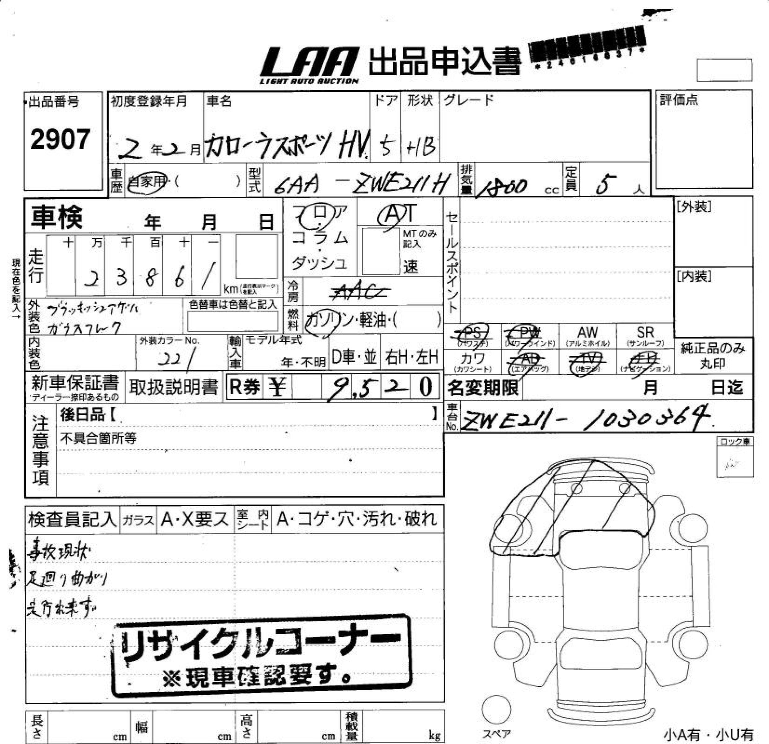 TOYOTA COROLLA SPORT - лот 2907