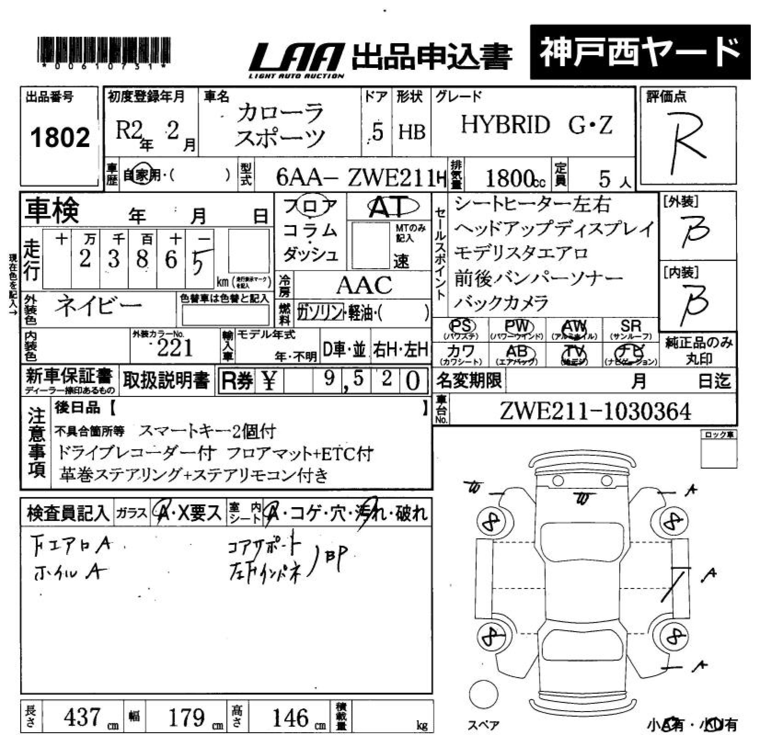 TOYOTA COROLLA SPORT HYBRID G Z - лот 1802