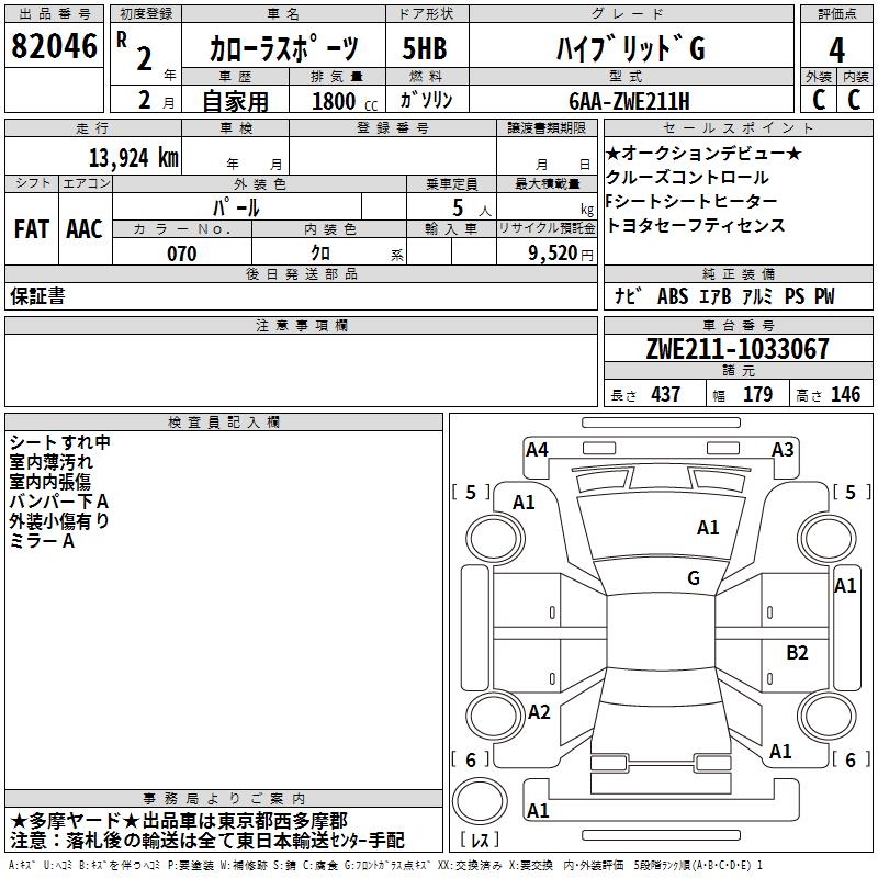 TOYOTA COROLLA SPORT HYBRID G - лот 82046