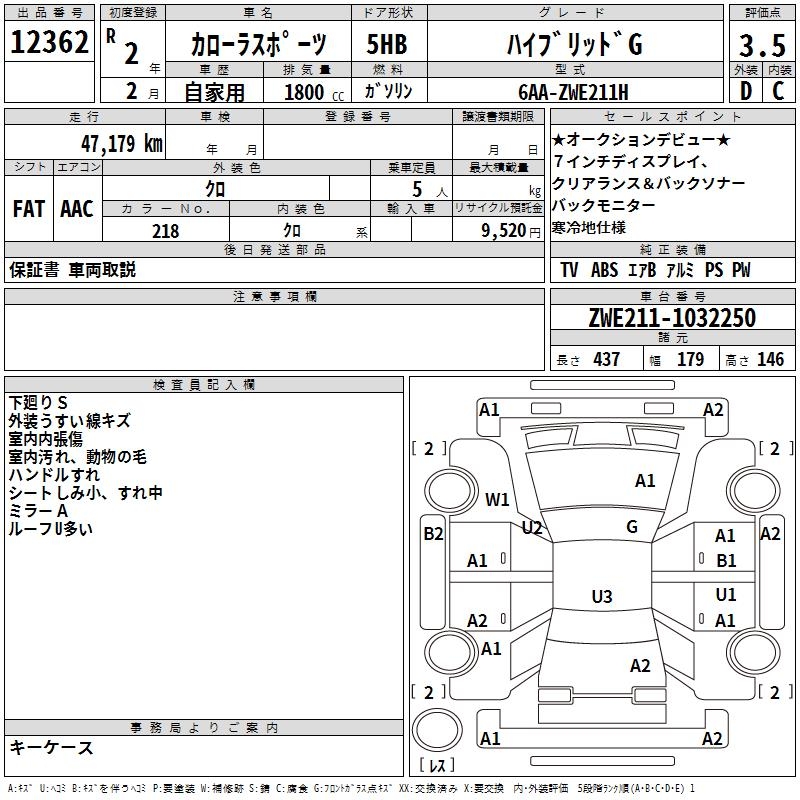 TOYOTA COROLLA SPORT HYBRID G - лот 12362