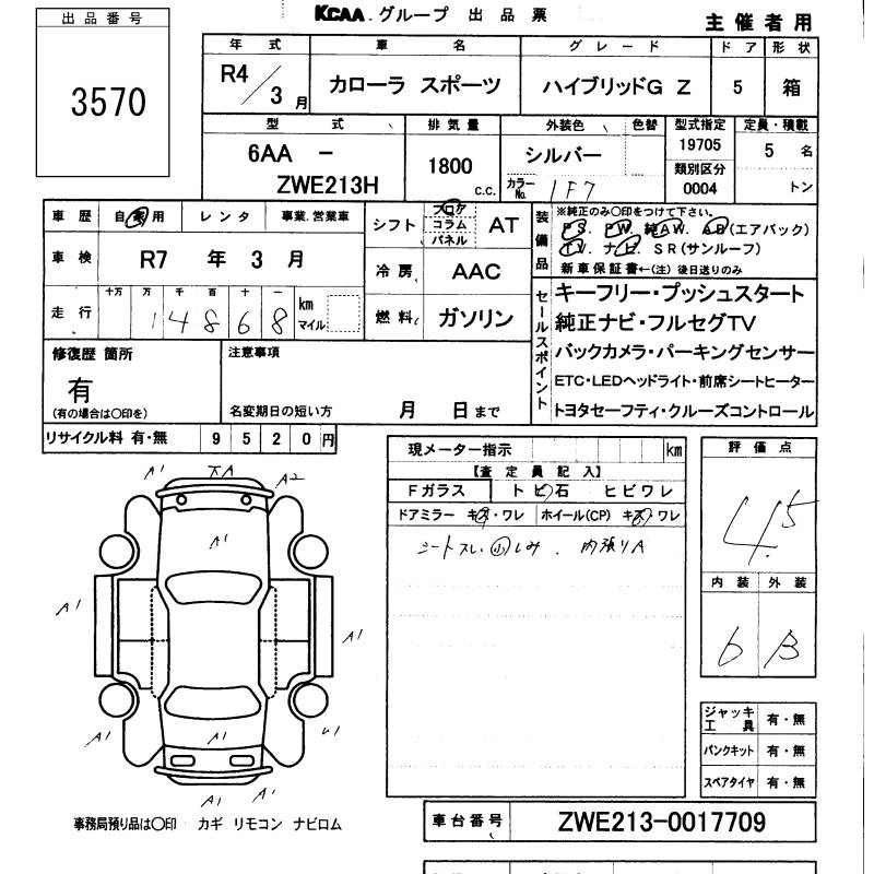 TOYOTA COROLLA SPORT HYBRID G Z - лот 3570