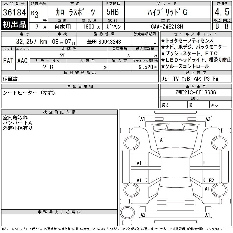 TOYOTA COROLLA SPORT HYBRID G - лот 36184