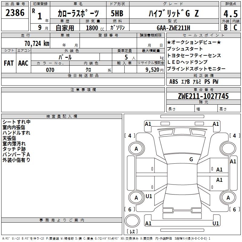 TOYOTA COROLLA SPORT HYBRID G Z - лот 2386