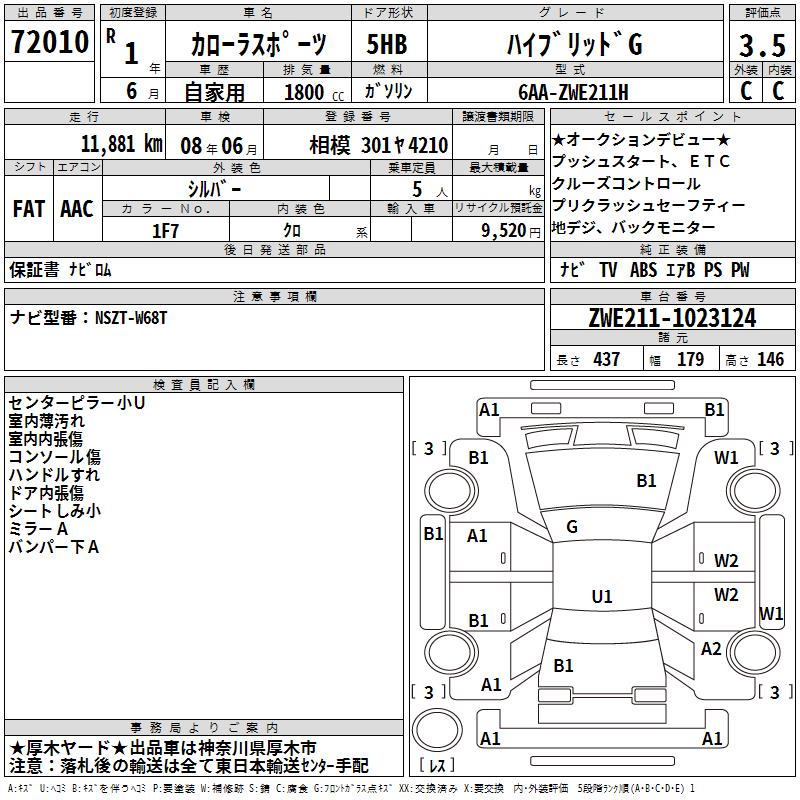 TOYOTA COROLLA SPORT HYBRID G - лот 72010