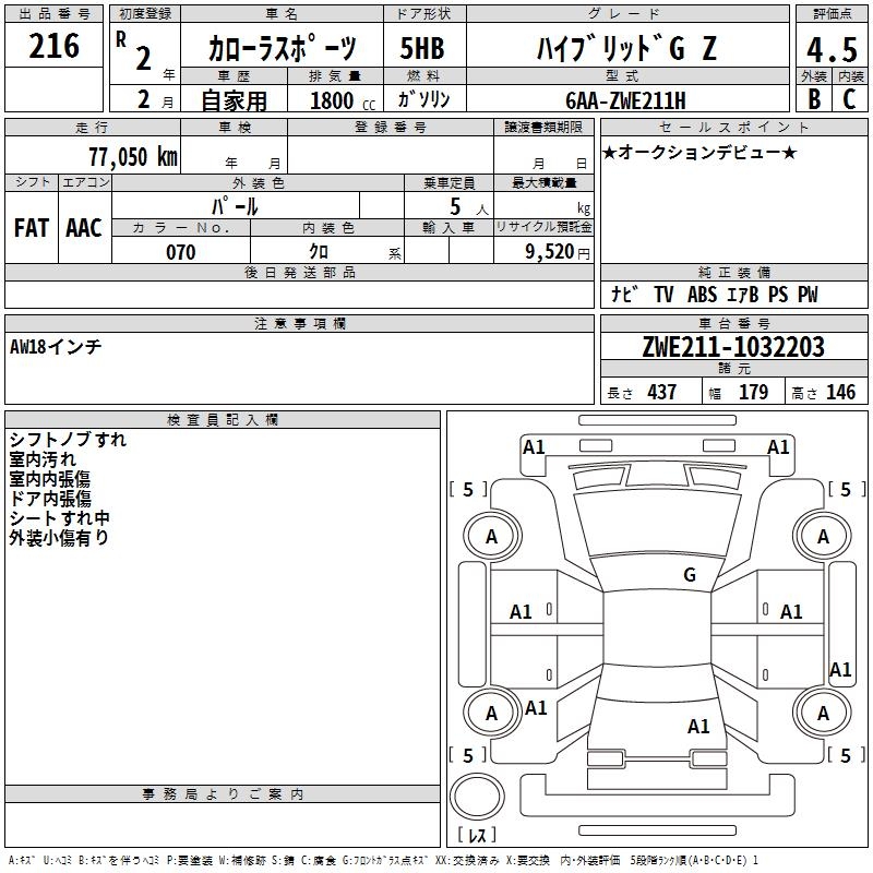 TOYOTA COROLLA SPORT HYBRID G Z - лот 216