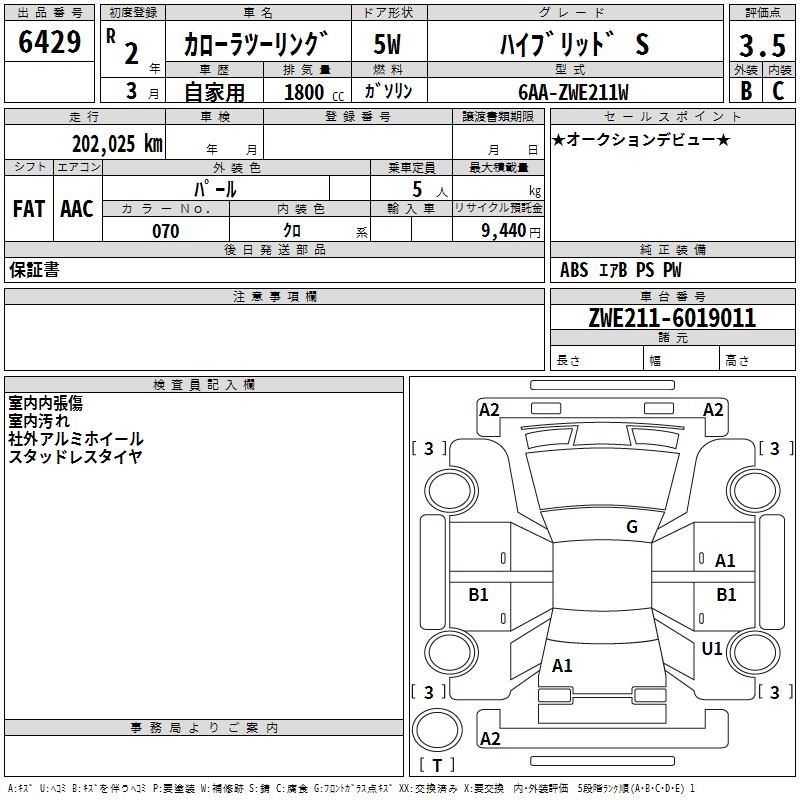 TOYOTA COROLLA WAGON HYBRID S - лот 6429
