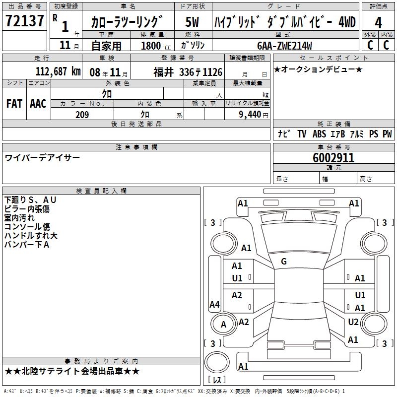 TOYOTA COROLLA WAGON HYBRID DOUBLE BA4WD - лот 72137