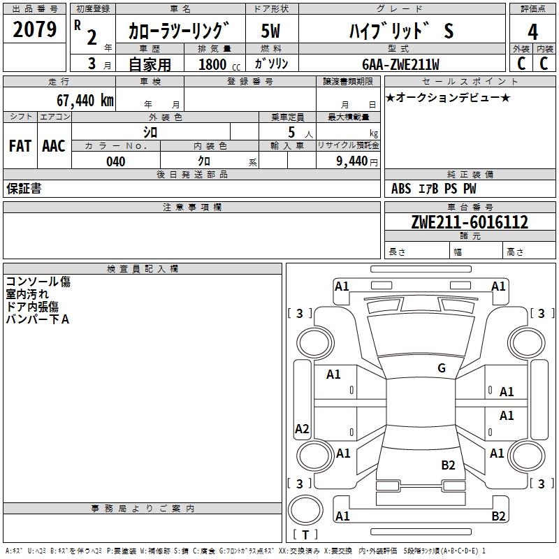 TOYOTA COROLLA WAGON HYBRID S - лот 2079