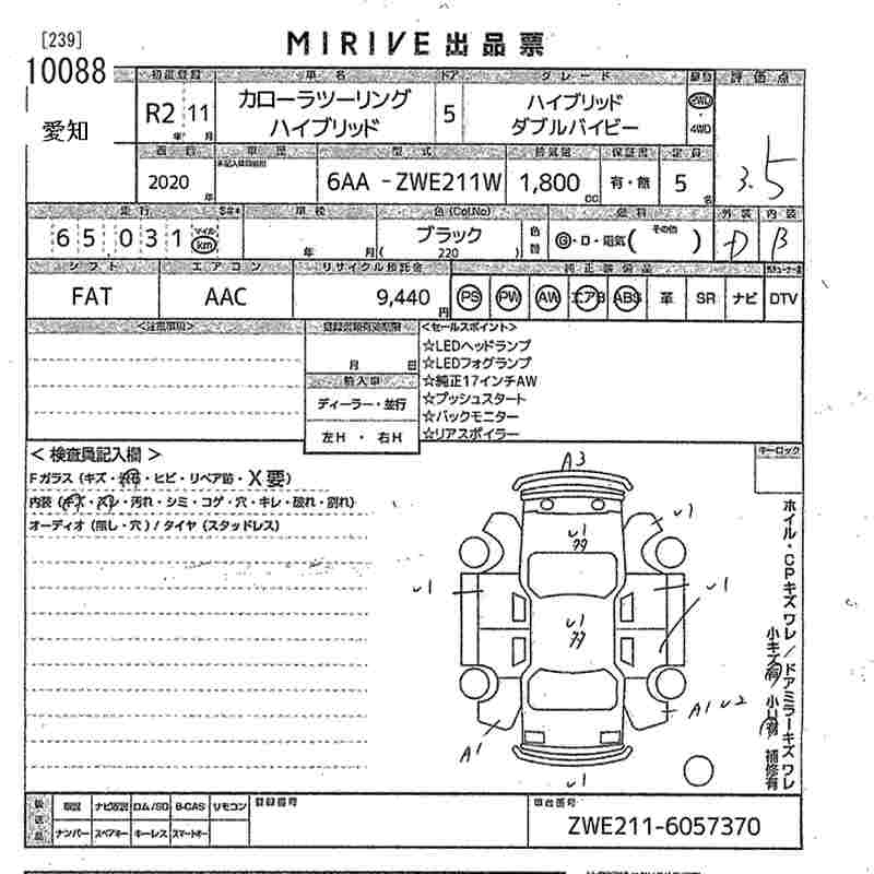 TOYOTA COROLLA WAGON HYBRID DOUBLE BAI BE - лот 10088