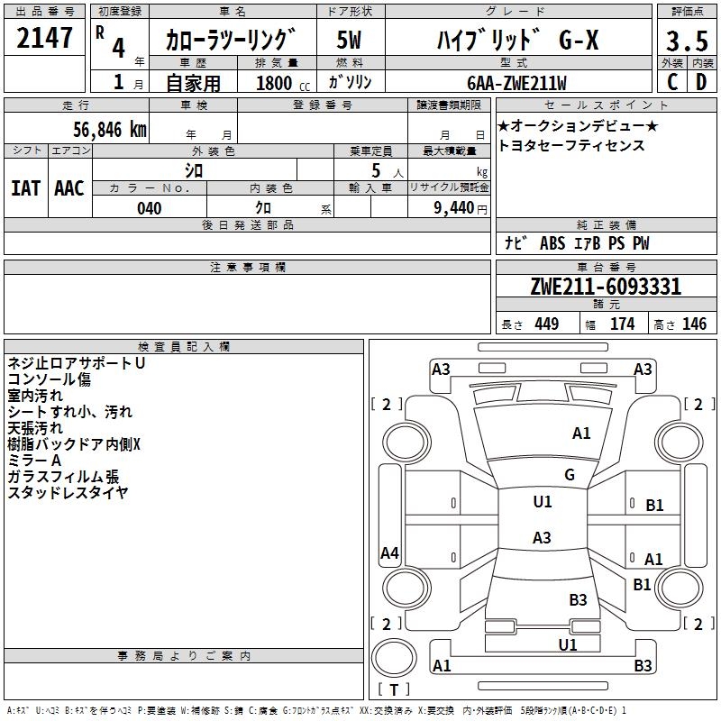 TOYOTA COROLLA WAGON HYBRID G-X - лот 2147