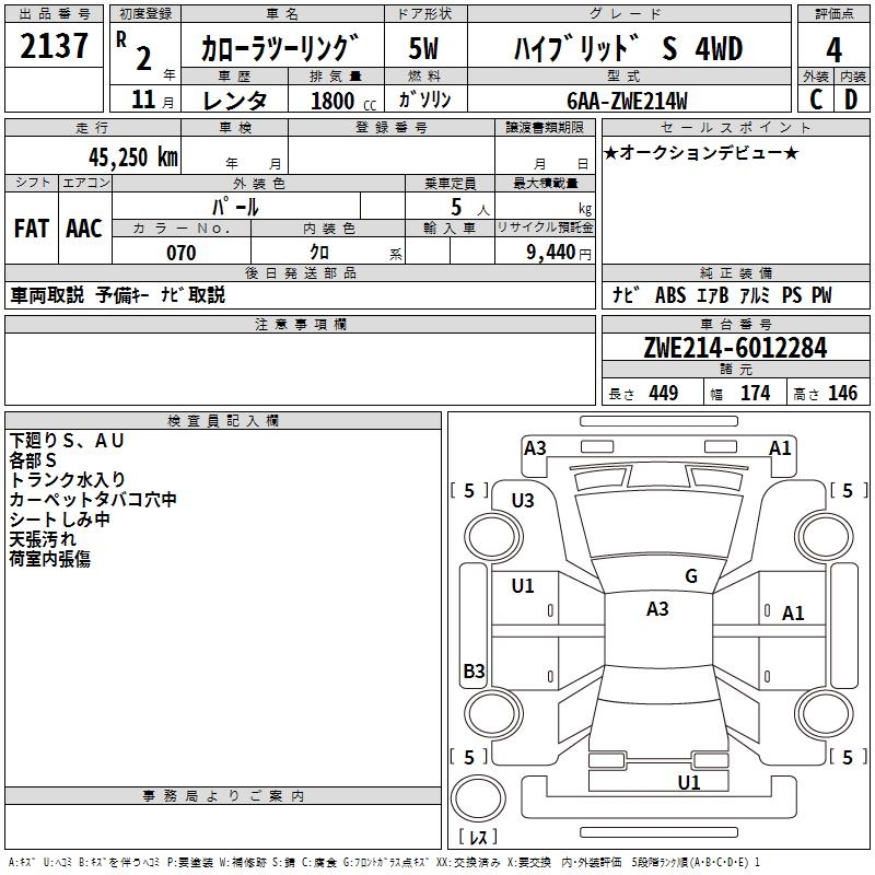 TOYOTA COROLLA WAGON HYBRID S 4WD - лот 2137