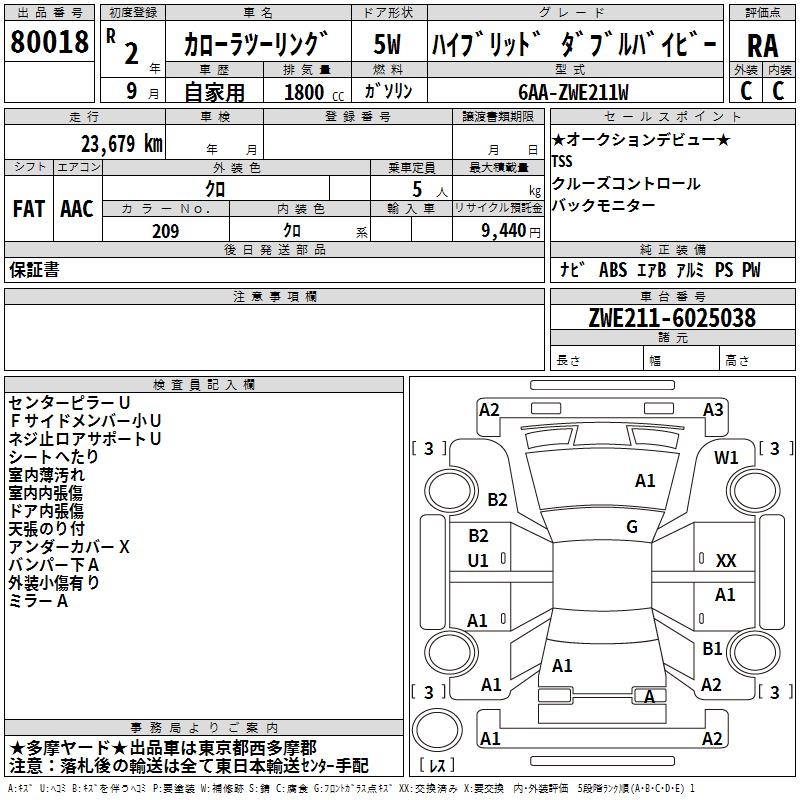 TOYOTA COROLLA WAGON HYBRID DOUBLE BAI BE - лот 80018