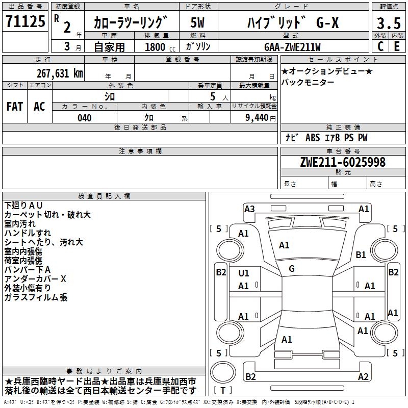 TOYOTA COROLLA WAGON HYBRID G-X - лот 71125