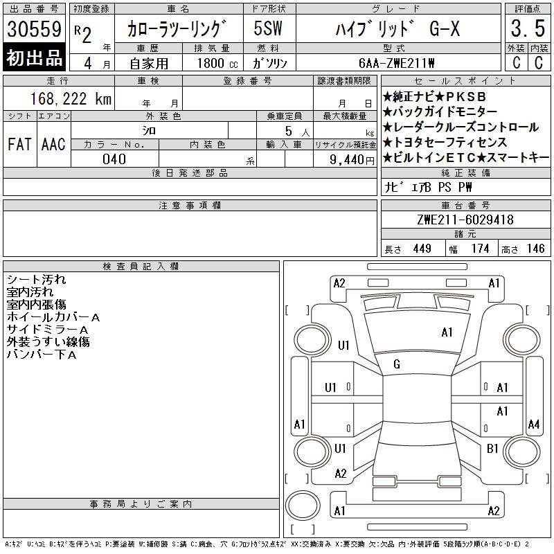TOYOTA COROLLA WAGON HYBRID G-X - лот 30559