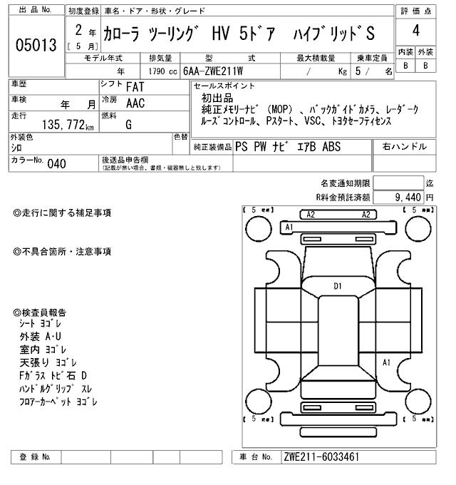 TOYOTA COROLLA WAGON HYBRID S - лот 5013