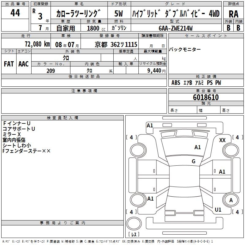 TOYOTA COROLLA WAGON HYBRID DOUBLE BA4WD - лот 44