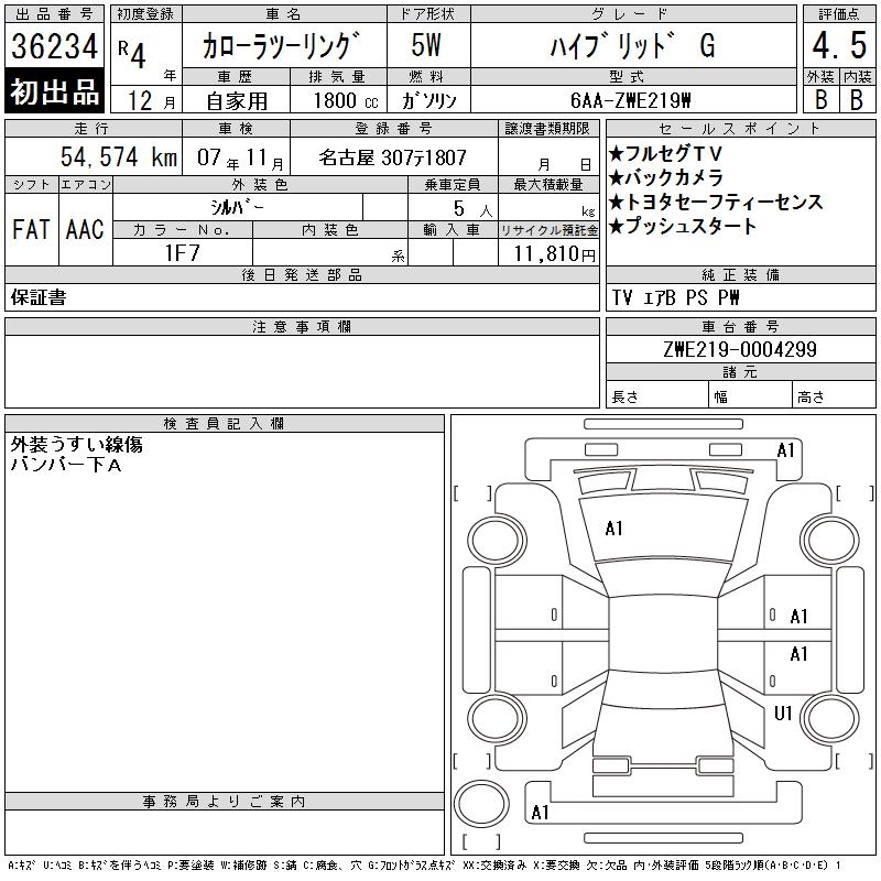 TOYOTA COROLLA WAGON HYBRID G - лот 36234
