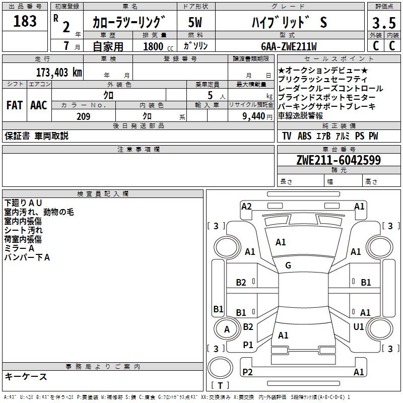 TOYOTA COROLLA WAGON HYBRID S - лот 183