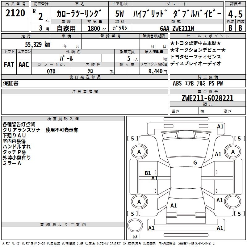 TOYOTA COROLLA WAGON HYBRID DOUBLE BAI BE - лот 2120