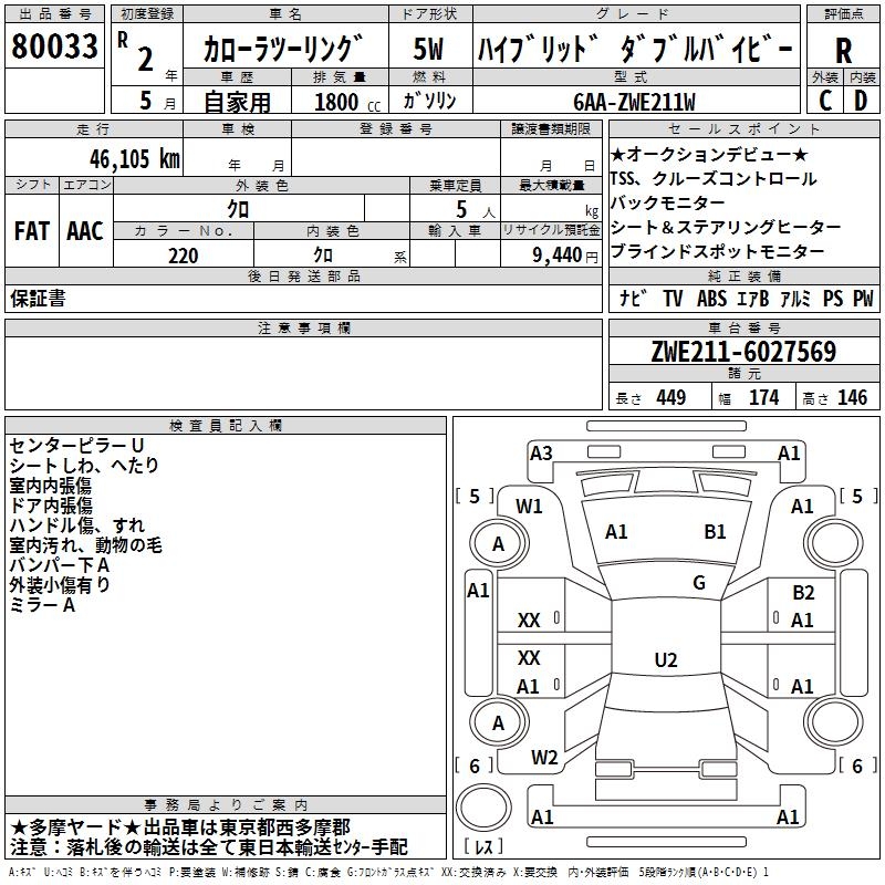 TOYOTA COROLLA WAGON HYBRID DOUBLE BAI BE - лот 80033