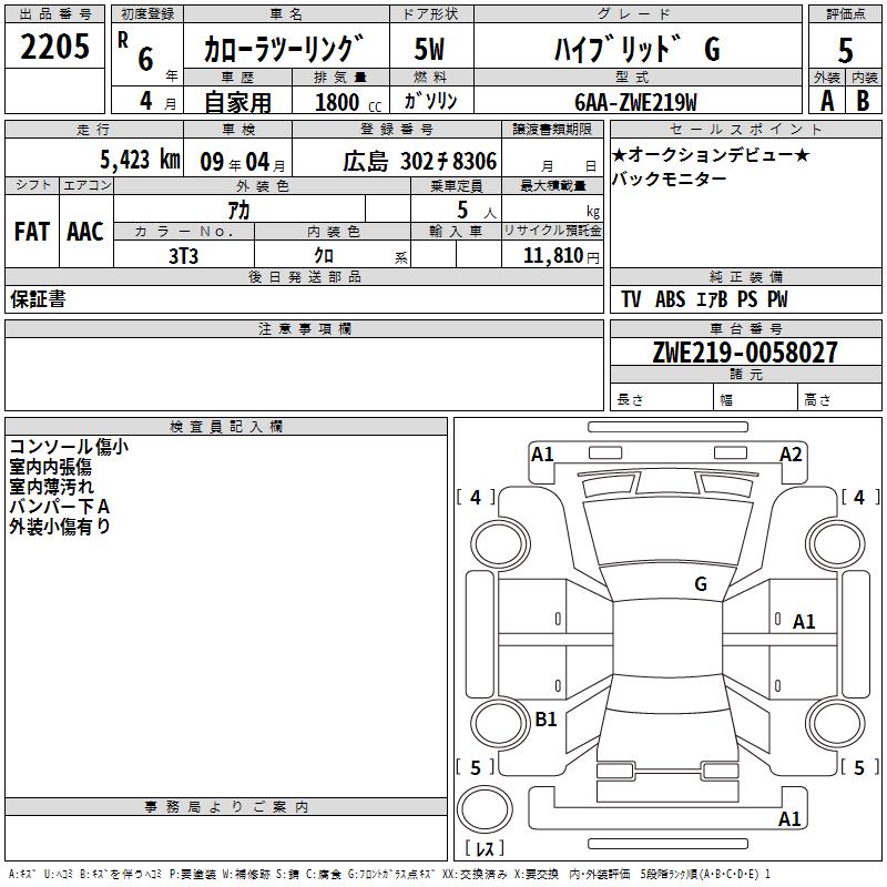 TOYOTA COROLLA WAGON HYBRID G - лот 2205