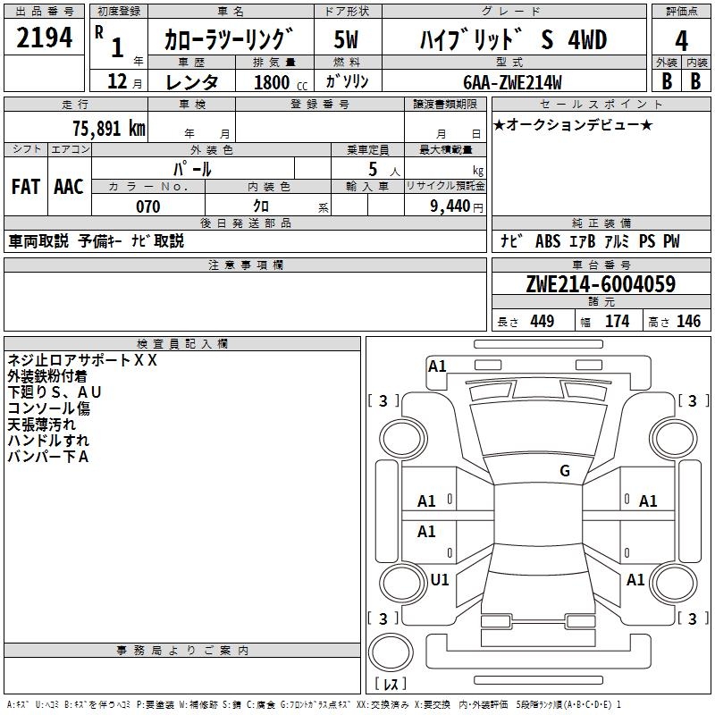 TOYOTA COROLLA WAGON HYBRID S 4WD - лот 2194