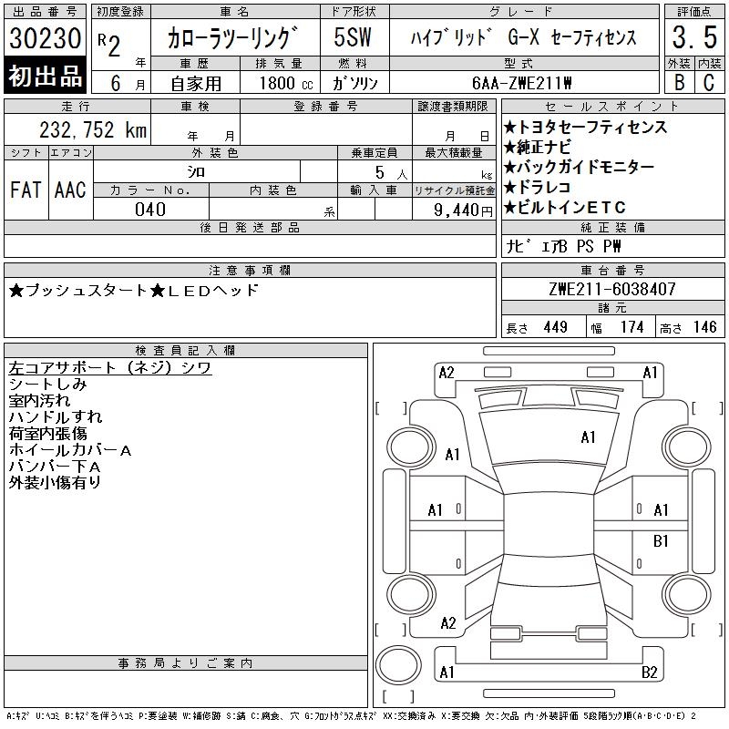 TOYOTA COROLLA WAGON HYBRID G-X SAFETY SEN - лот 30230