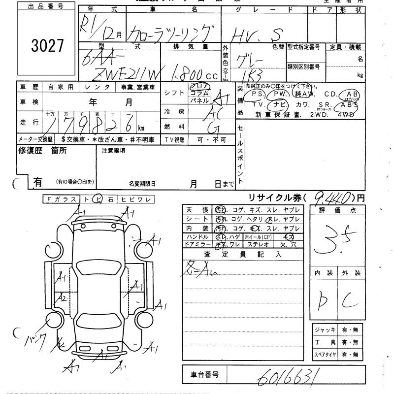 TOYOTA COROLLA WAGON HYBRID S - лот 3027