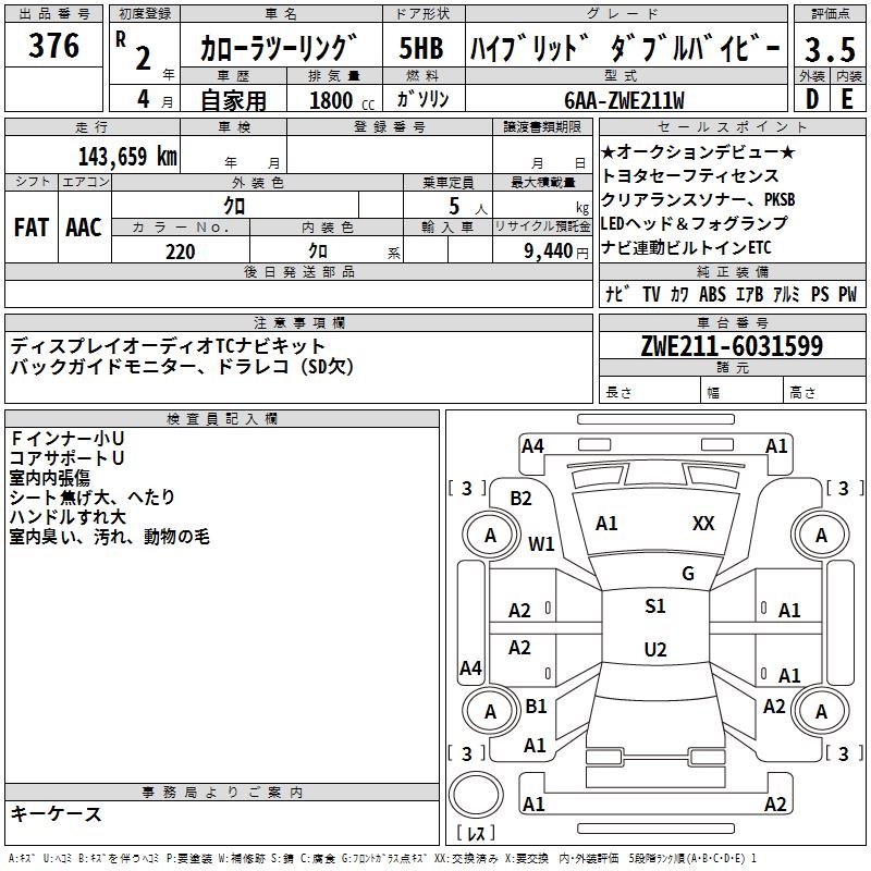 TOYOTA COROLLA WAGON HYBRID DOUBLE BAI BE - лот 376