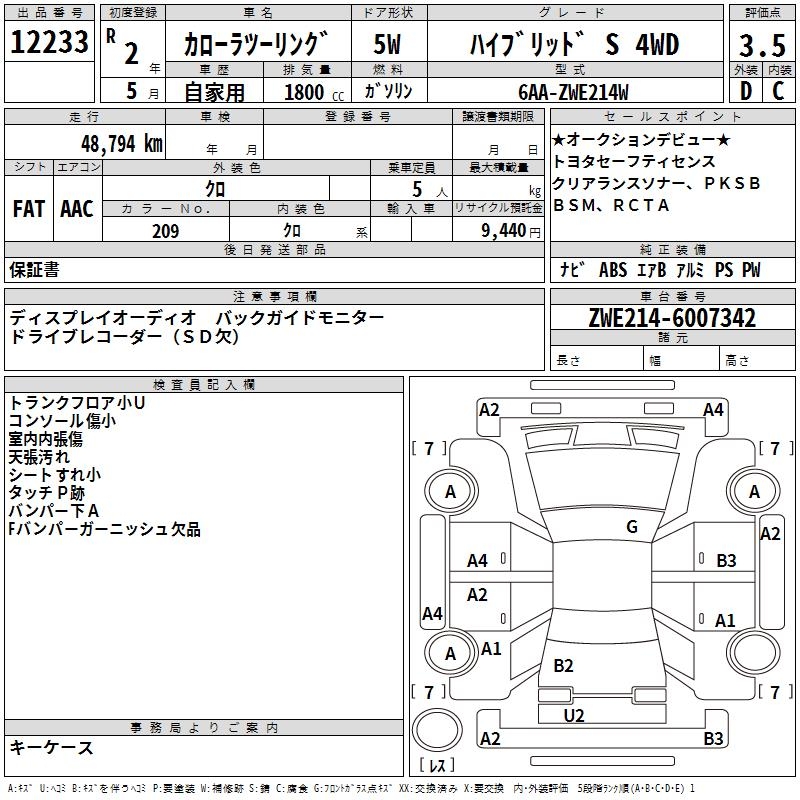 TOYOTA COROLLA WAGON HYBRID S 4WD - лот 12233