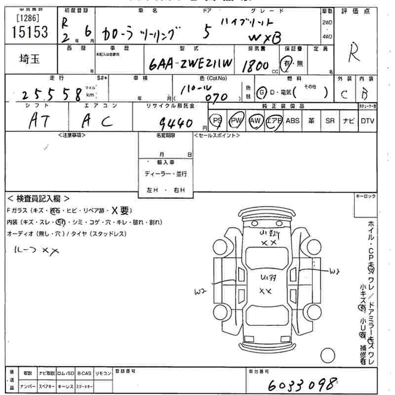 TOYOTA COROLLA WAGON HYBRID DOUBLE BAI BE - лот 15153