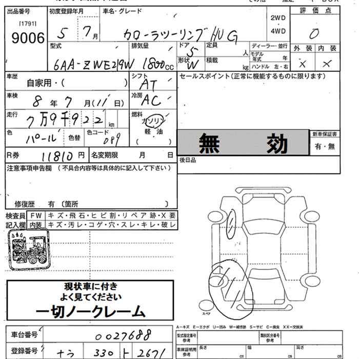 TOYOTA COROLLA WAGON HYBRID G - лот 9006