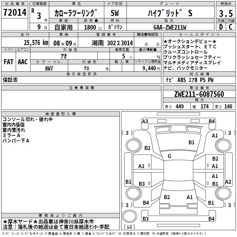 TOYOTA COROLLA WAGON HYBRID S - лот 72014
