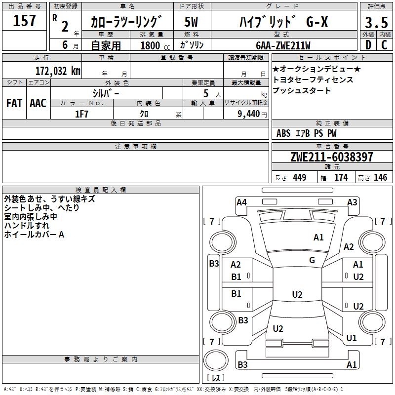 TOYOTA COROLLA WAGON HYBRID G-X - лот 157