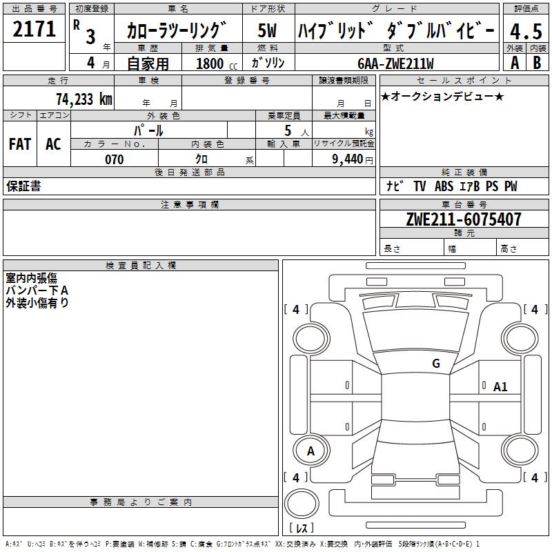 TOYOTA COROLLA WAGON HYBRID DOUBLE BAI BE - лот 2171