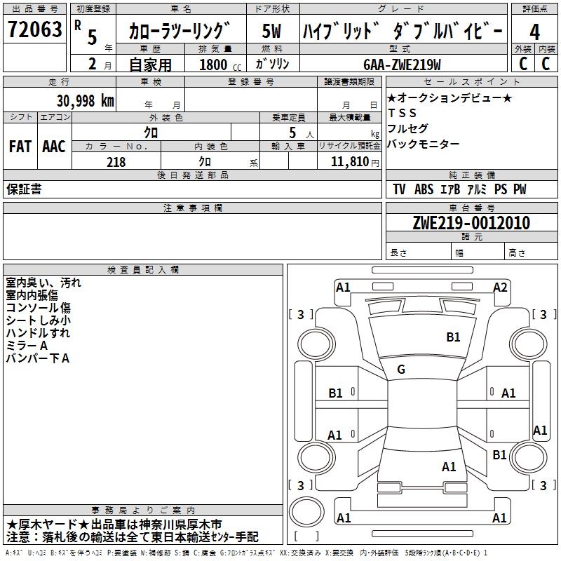 TOYOTA COROLLA WAGON HYBRID DOUBLE BAI BE - лот 72063