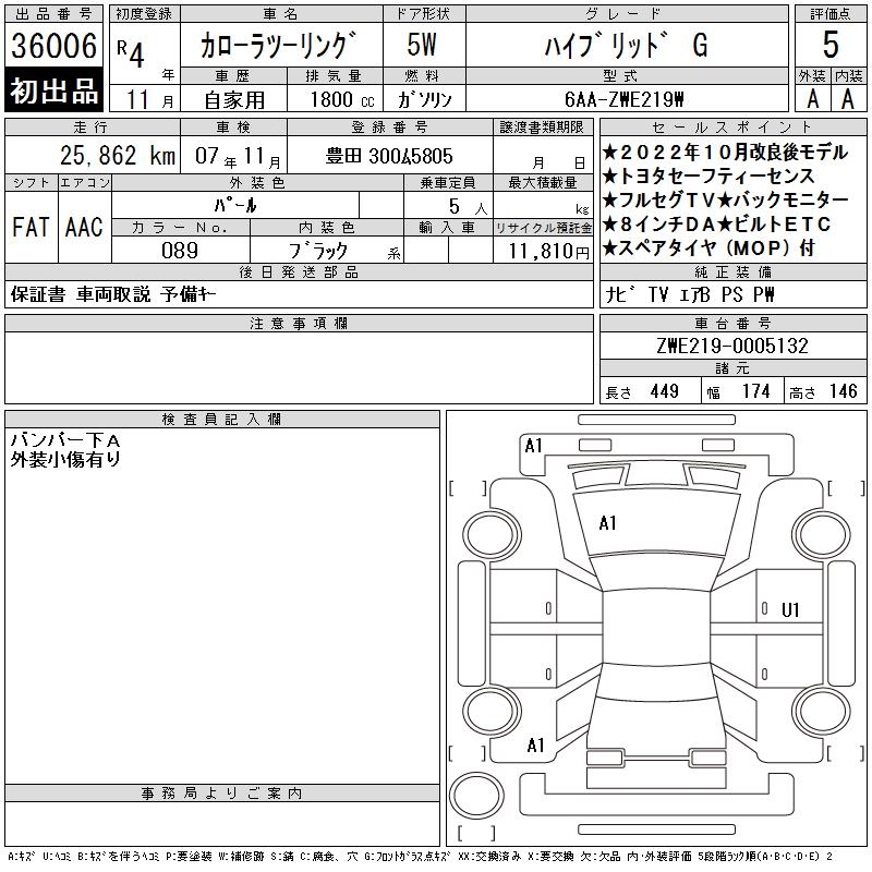 TOYOTA COROLLA WAGON HYBRID G - лот 36006