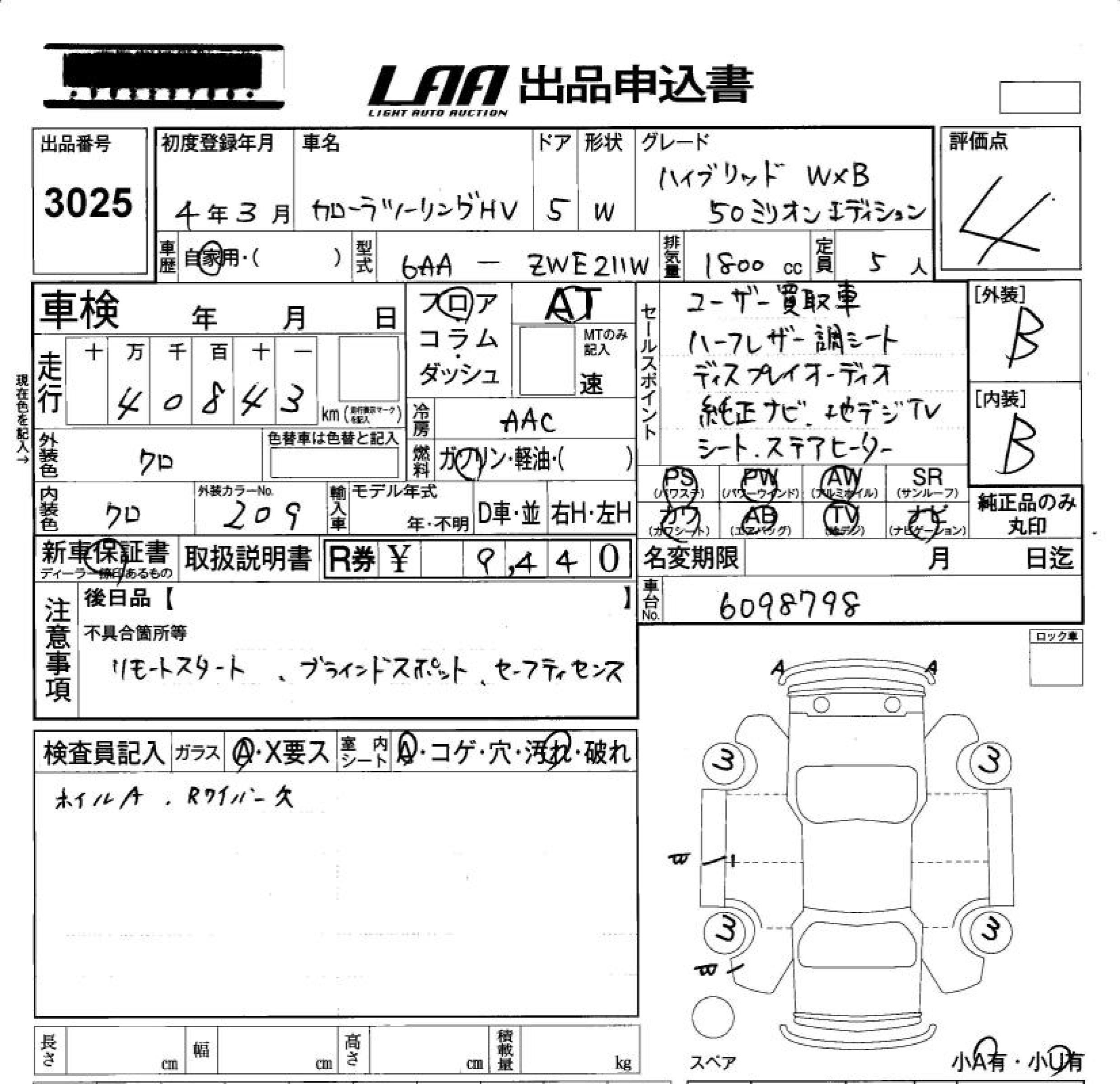 TOYOTA COROLLA WAGON HYBRID DOUBLE BAI BE - лот 3025