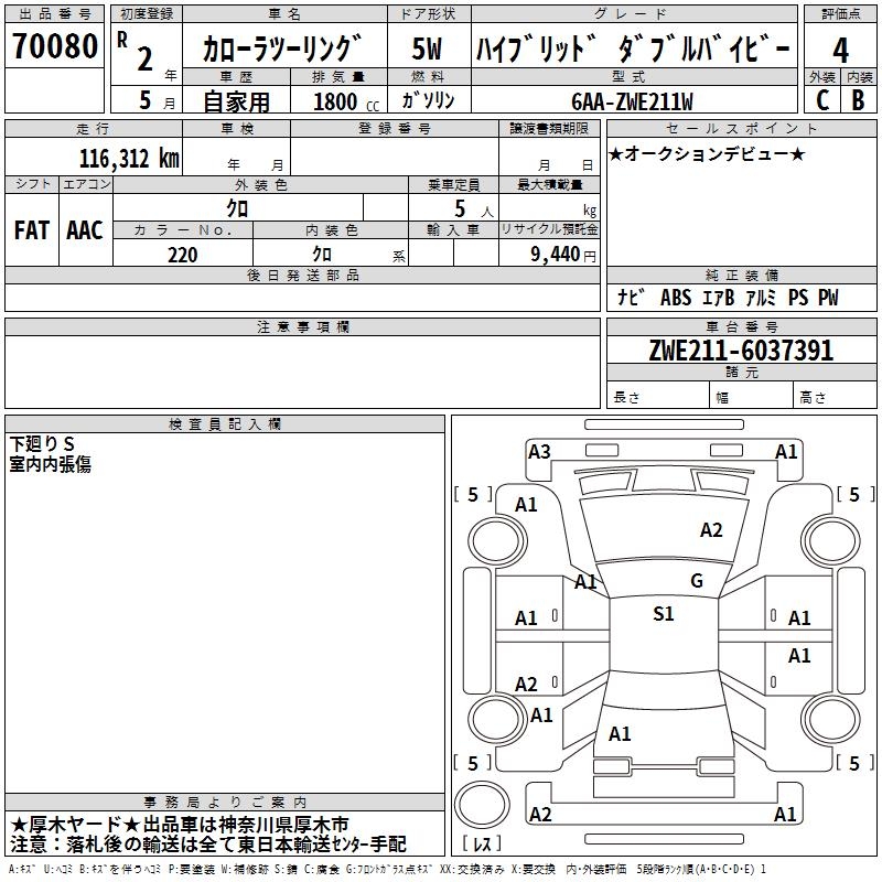 TOYOTA COROLLA WAGON HYBRID DOUBLE BAI BE - лот 70080