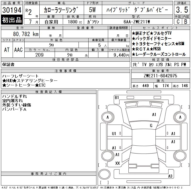 TOYOTA COROLLA WAGON HYBRID DOUBLE BAI BE - лот 30194
