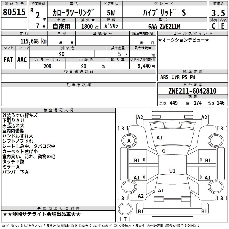 TOYOTA COROLLA WAGON HYBRID S - лот 80515
